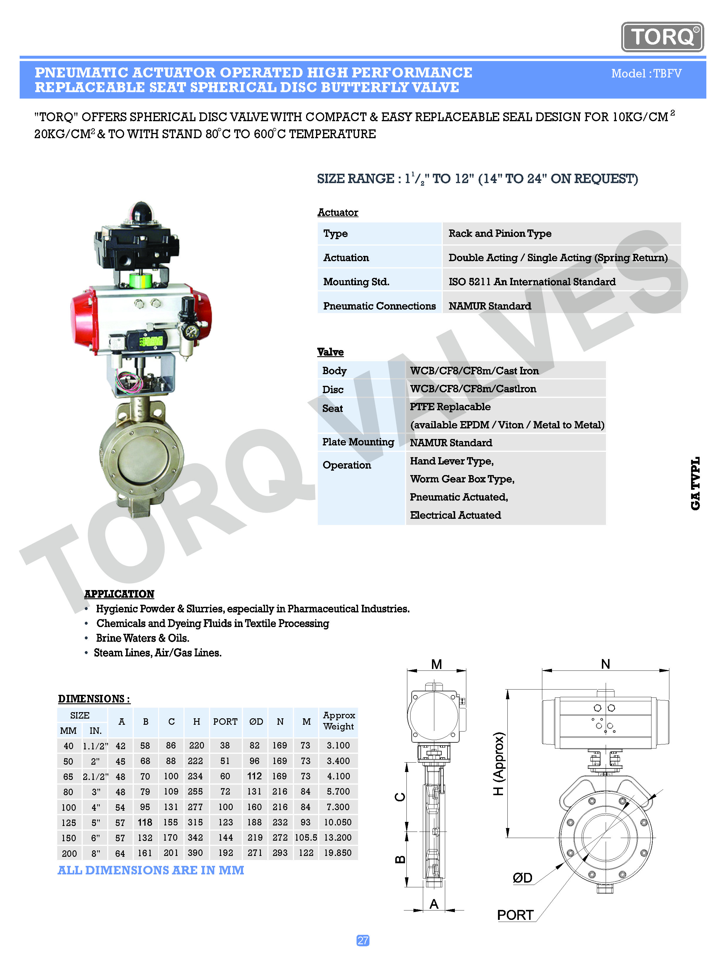 pneumatic actuator operated high performance replaceable seat spherical disc butterfly valve